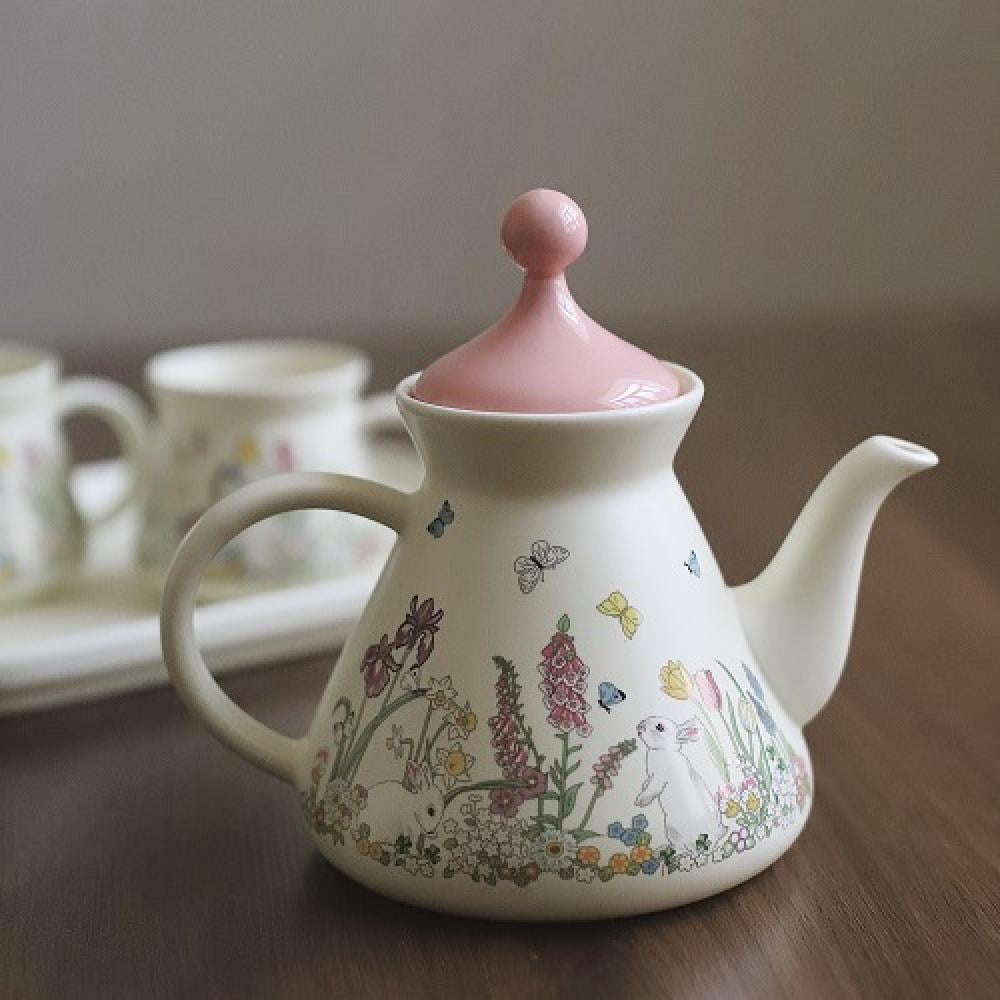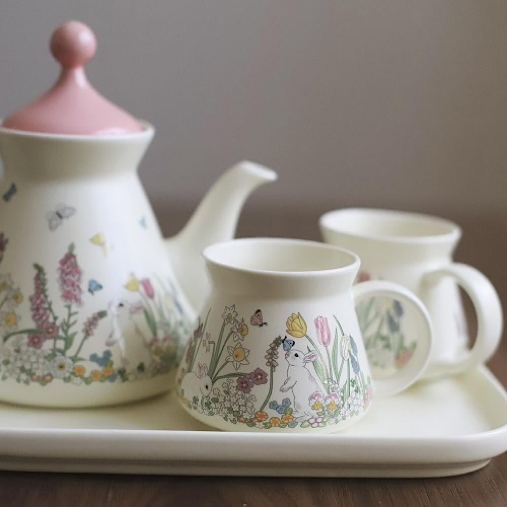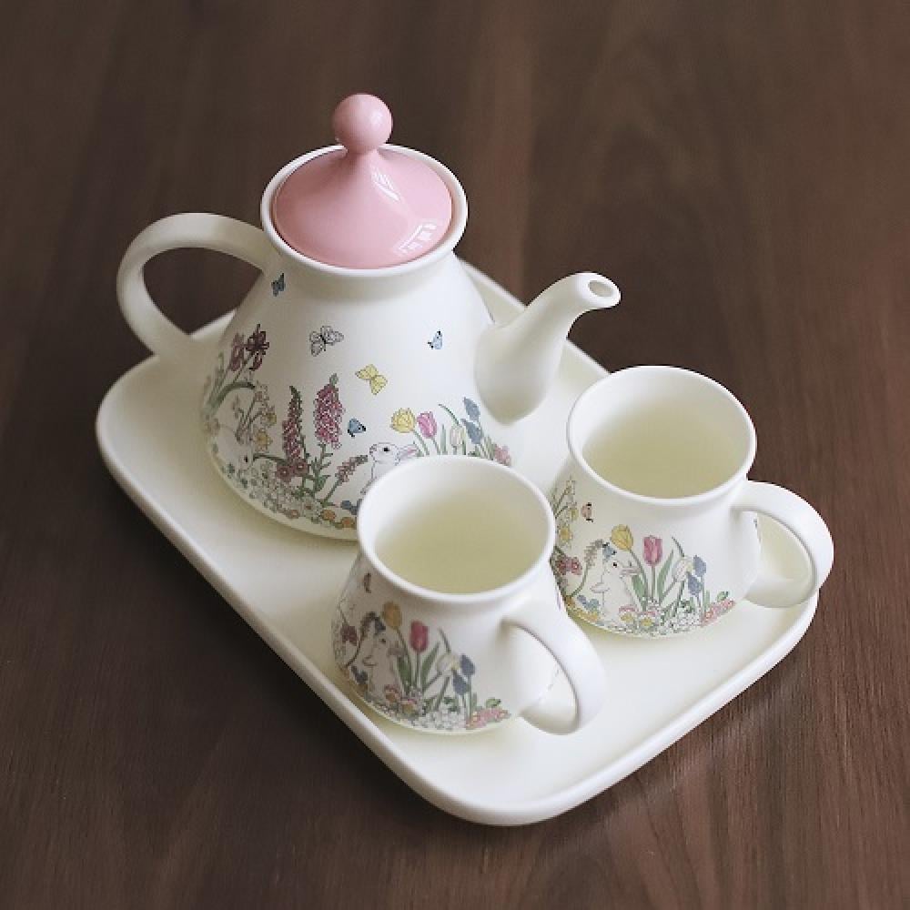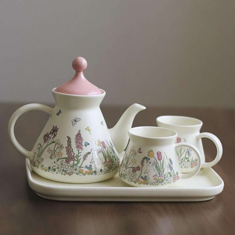 طقم كوبين وابريق للشاي وصينيه | Ceramic pot, two cups and tray set |