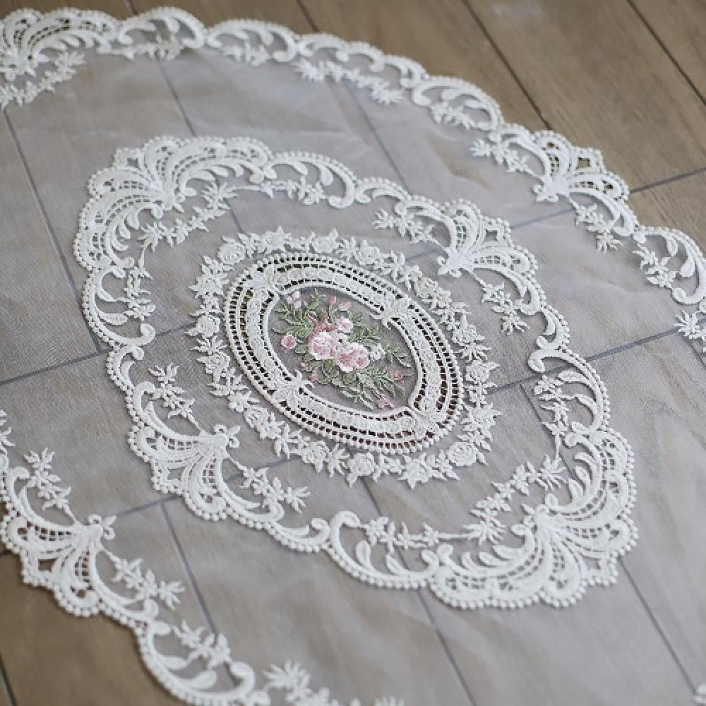 مفرش فضي | Oval Lace Gray 70x45 cm