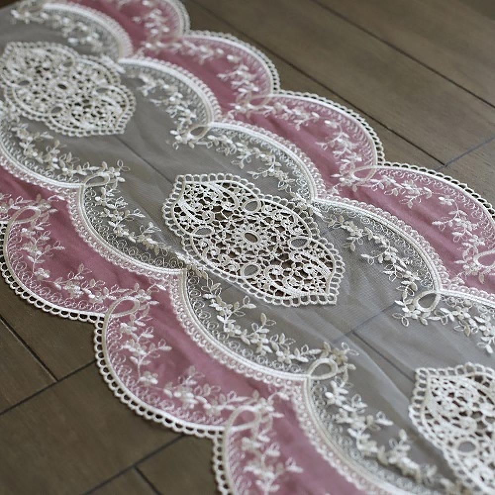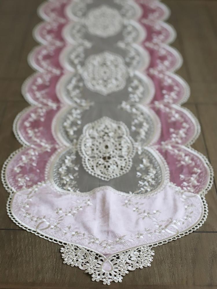 مفرش دانتيل و مخمل وردي | Lace/Velvet Tablecloth Pink 38x220 cm
