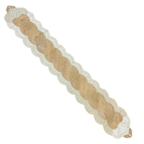 مفرش دانتيل ومخمل المقاس الكبير لون بيج | Lace Velvet 38x220 cm