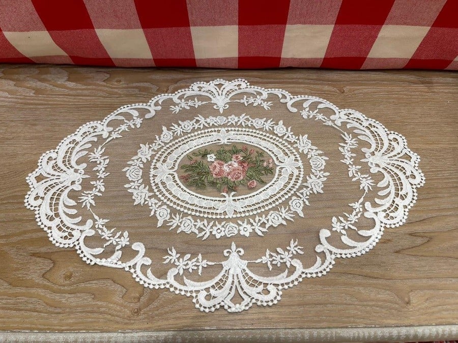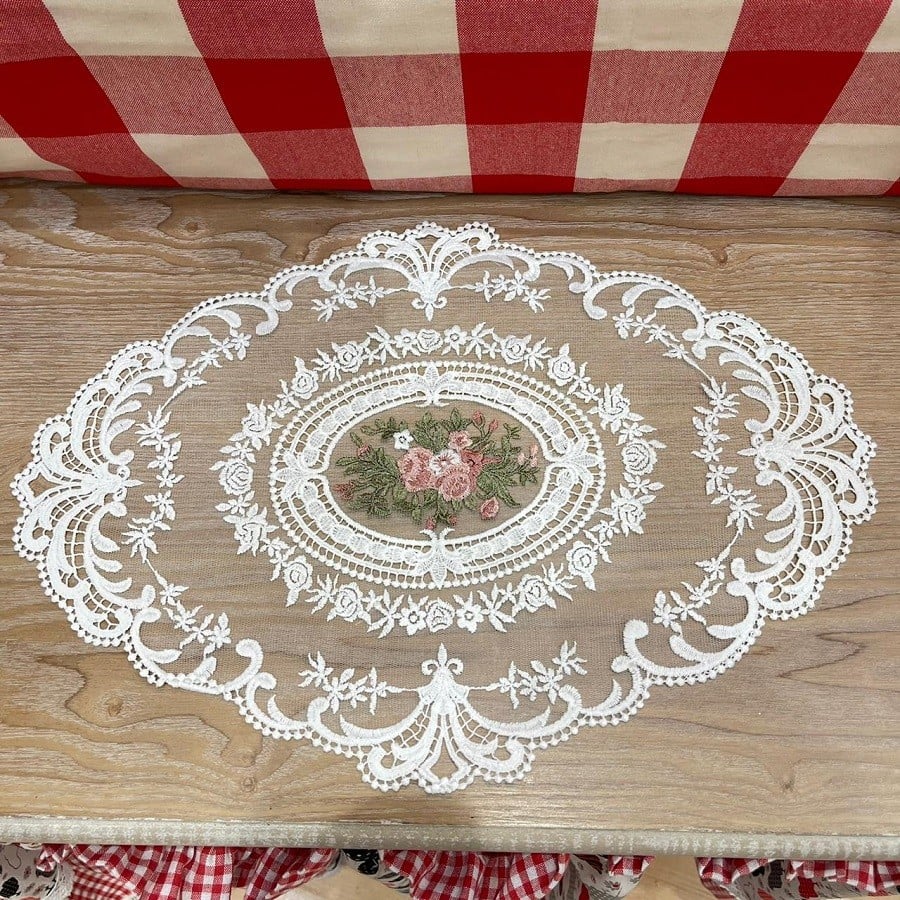 مفرش دانتيل بيضاوي اوف وايت | Lace Oval 30x40 cm Offwhite